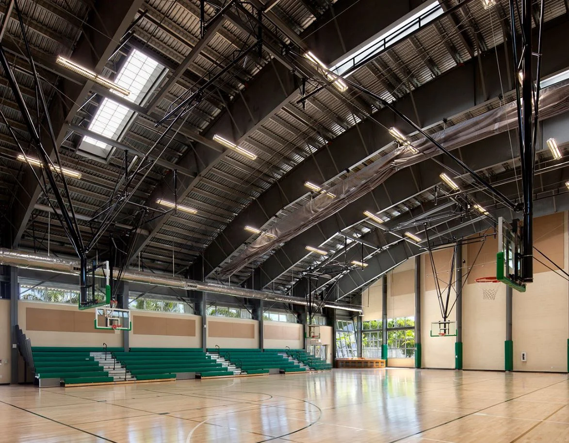 The community center at Claude Pepper Park, which included a day care, administrative offices, computer room, multi-purpose rooms, teen lounge, kitchenette and basketball courts / multi-purpose auditorium within it 30,000 SF feet of construction. As a LEED Certified Gold building the challenges faced include the use of recycled materials and an environmentally challenged site that required innovative cost solutions to drainage and on site water management. The building structure is a combination of conventional reinforced concrete and prefabricated metal building systems. Working with the landscape architect dry retentions reminiscent of Florida Hardwood Hammock areas were created to help anchor the building to the site and enhance the sculptural aspects of the building on the site.